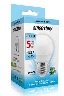 Купить Лампа светодиодная Шарик (LED) 5Вт 4000К E27 Smartbuy (SBL-G45-05-40K-E27) SmartBuy по лучшей цене с доставкой. Зарядочка - интернет магазин №1 в Калининграде
