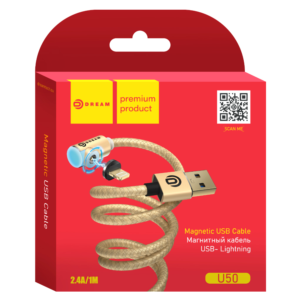 Купить Кабель LIGHTNING DREAM U50 2.4A 1M (магнитный) золото (179076) по лучшей цене с доставкой. Зарядочка - интернет магазин №1 в Калининграде